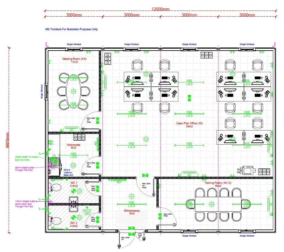 12 – 24 Person Modular Office (115m2 - 216m2)